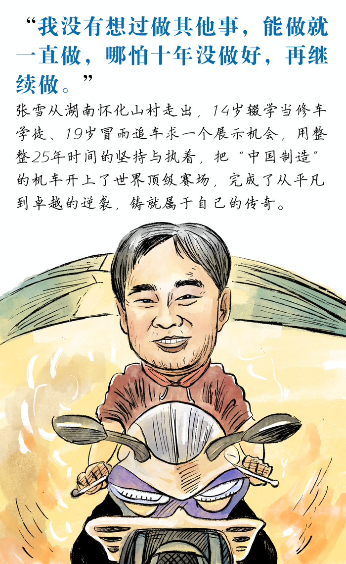 从湖南麻阳的贫瘠山村出发,10 岁扛起生活重担,14 岁辍学与油污为伴,19 岁冒雨狂奔百里只为一个追梦机会,张雪的人生从无坦途,却始终被心底对机车的热爱照亮。他在泥泞沙洲上苦练车技,在创业低谷中坚守核心技术,哪怕散尽积蓄、屡遭挫折,也从未放下对赛场与中国制造的执念。二十五年风雨兼程,他从满身伤痕的草根少年,成长为打破国际豪强垄断、让中国机车登顶世界顶级赛场的创造者,用孤注一掷的执着、脚踏实地的深耕,书写了平凡人逐梦不凡的传奇。让每一步奔赴都意义非凡,人间值得,梦想终会开花。